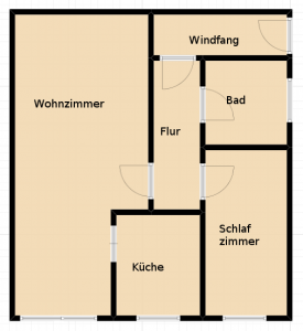 - 2 Zimmer, Küche, Bad, Flur, Windfang